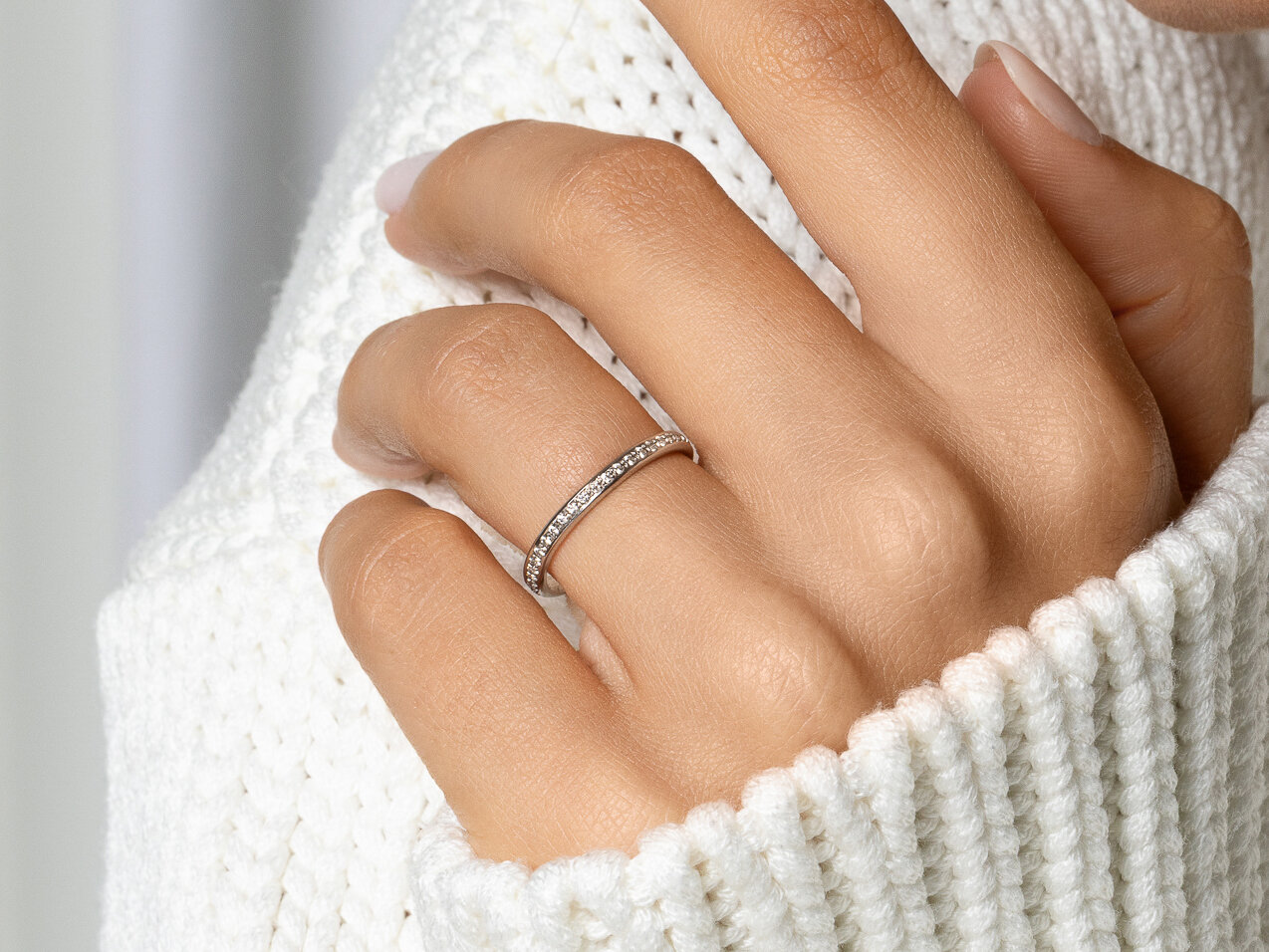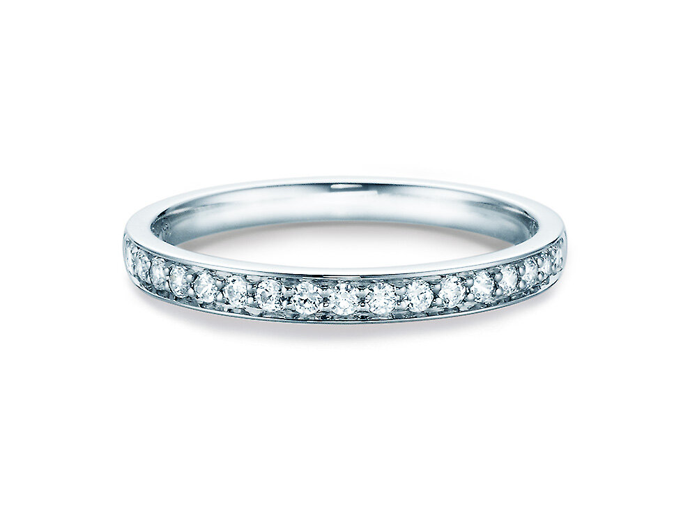 The band of diamonds symbolizes eternal, infinite love. Eternity rings are especially popular as for the proposal and can perfectly be worn after the wedding in front of the wedding ring.