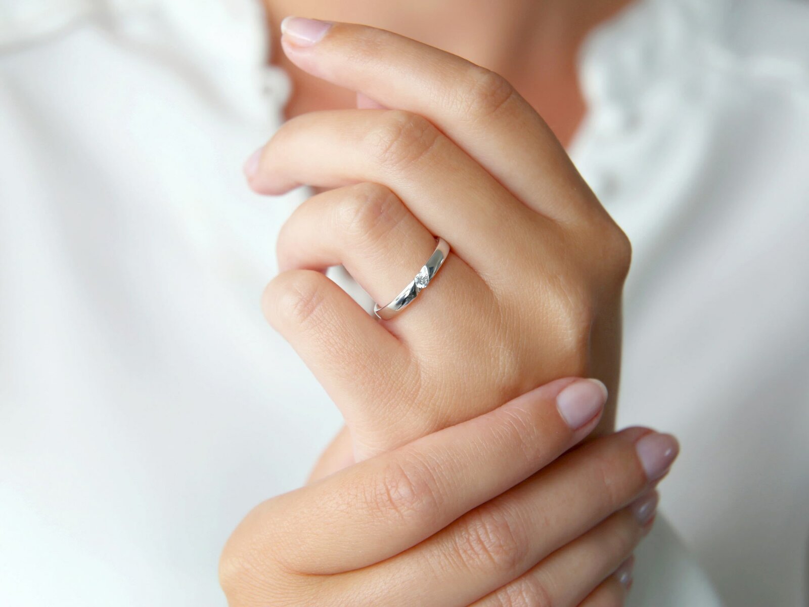 At first glance a classic chanel ring, simple and elegant. A closer look reveals the special design of the Italic engagement ring with diamond. Through the open sides of the ring band, light can enter the diamond, which makes it shine with a thousand bright light reflexes. The diamond is securely held by it's diagonal frame.