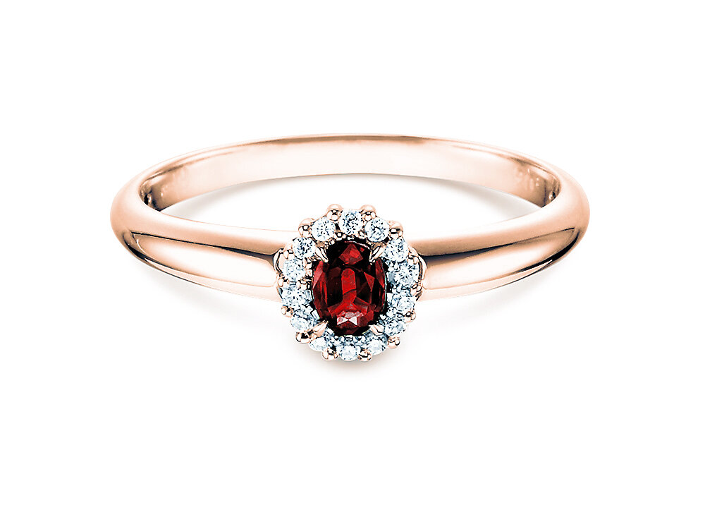 14K rosé gold with ruby 0.25ct and diamonds 0.06ct