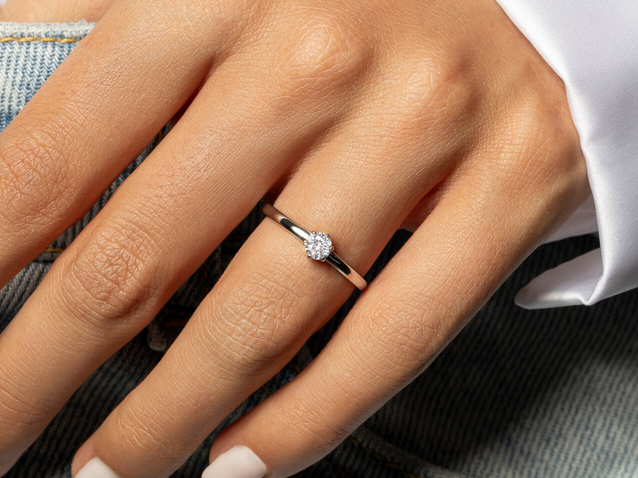 You will receive a discreet shipping box with a neutral sender, in which a white box is placed. Inside you will find a black velvet ring case (without logo) in which your engagement ring will optimally be protected during shipping.
