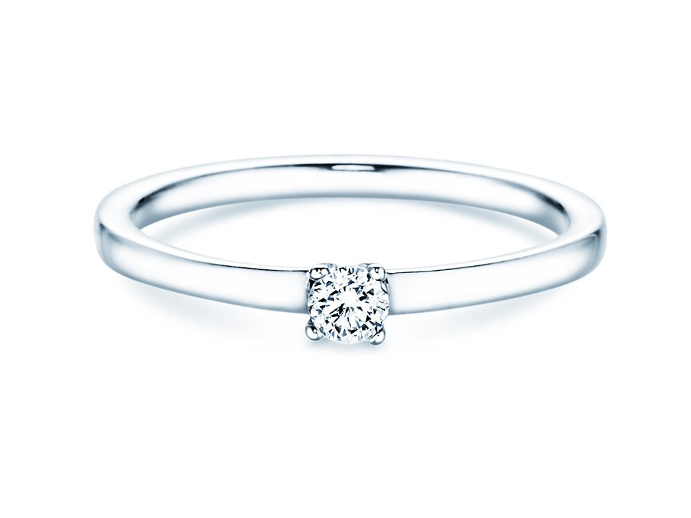 The engagement ring Modern Petite is the ideal start model into the world of classic jewellery. The shimmering diamond is held by a four prong setting. The model Modern Petite is available in 14k (with 58,5% pure gold) and 18k (75% pure gold) in three timeless metal colours.