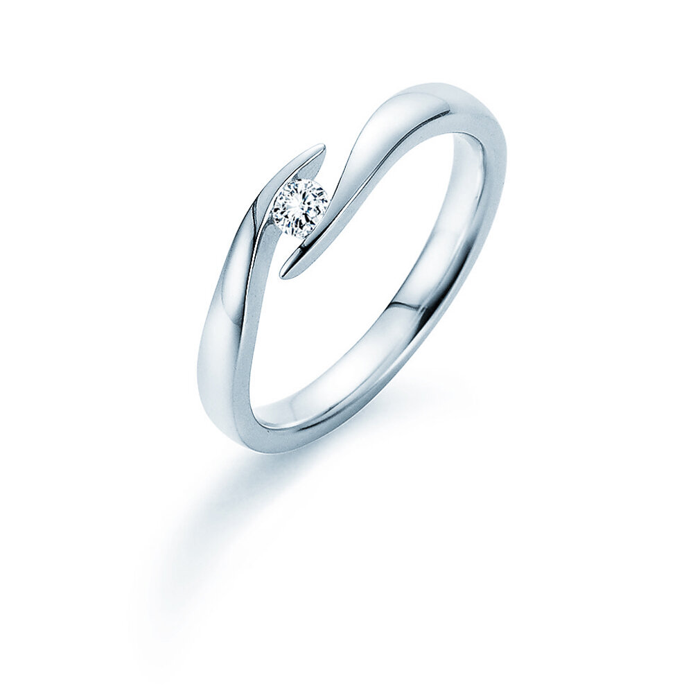 Elegant and unique design: The engagement ring Twist holds its diamond like a precious treasure. Advice: We recommend the classic precious metal white gold for this engagement ring. Of course, you can also get the Twist tension ring in plain silver or - for maximum elegance - in platinum.