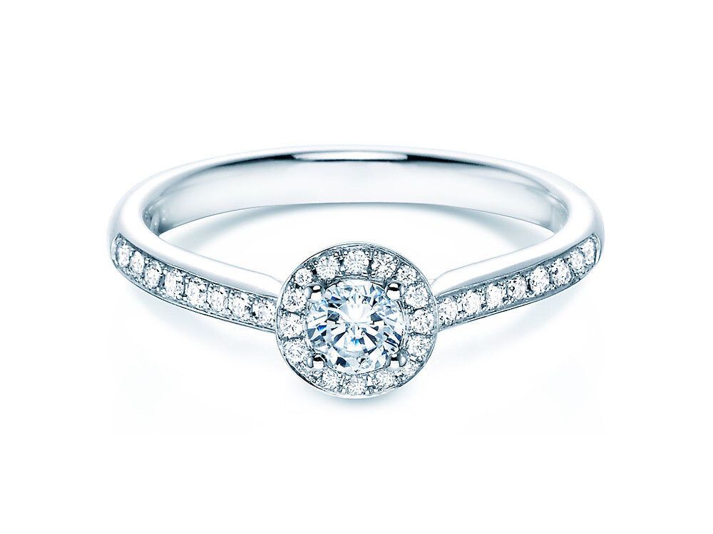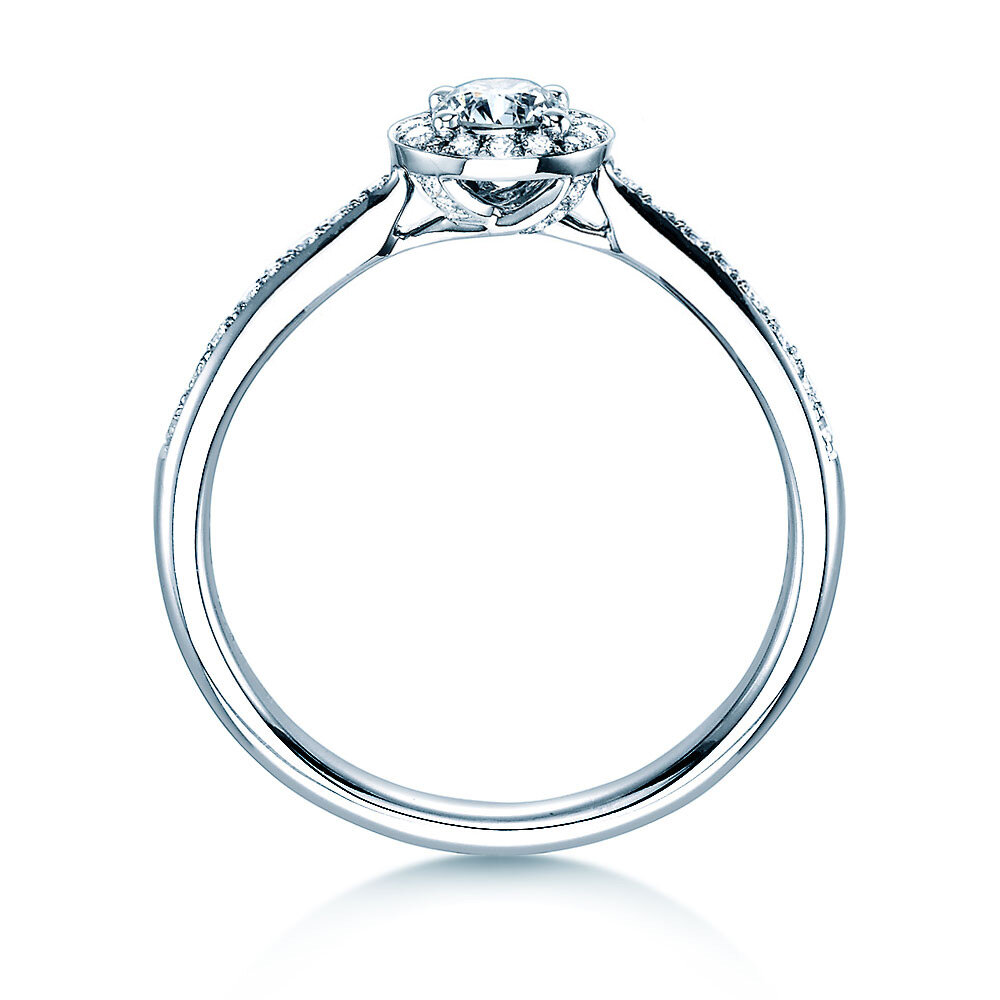 The name Halo stands for the filigree diamond wreath, which emphasizes the beautiful, round diamond. A beautiful engagement ring with immense beauty for a very special woman.