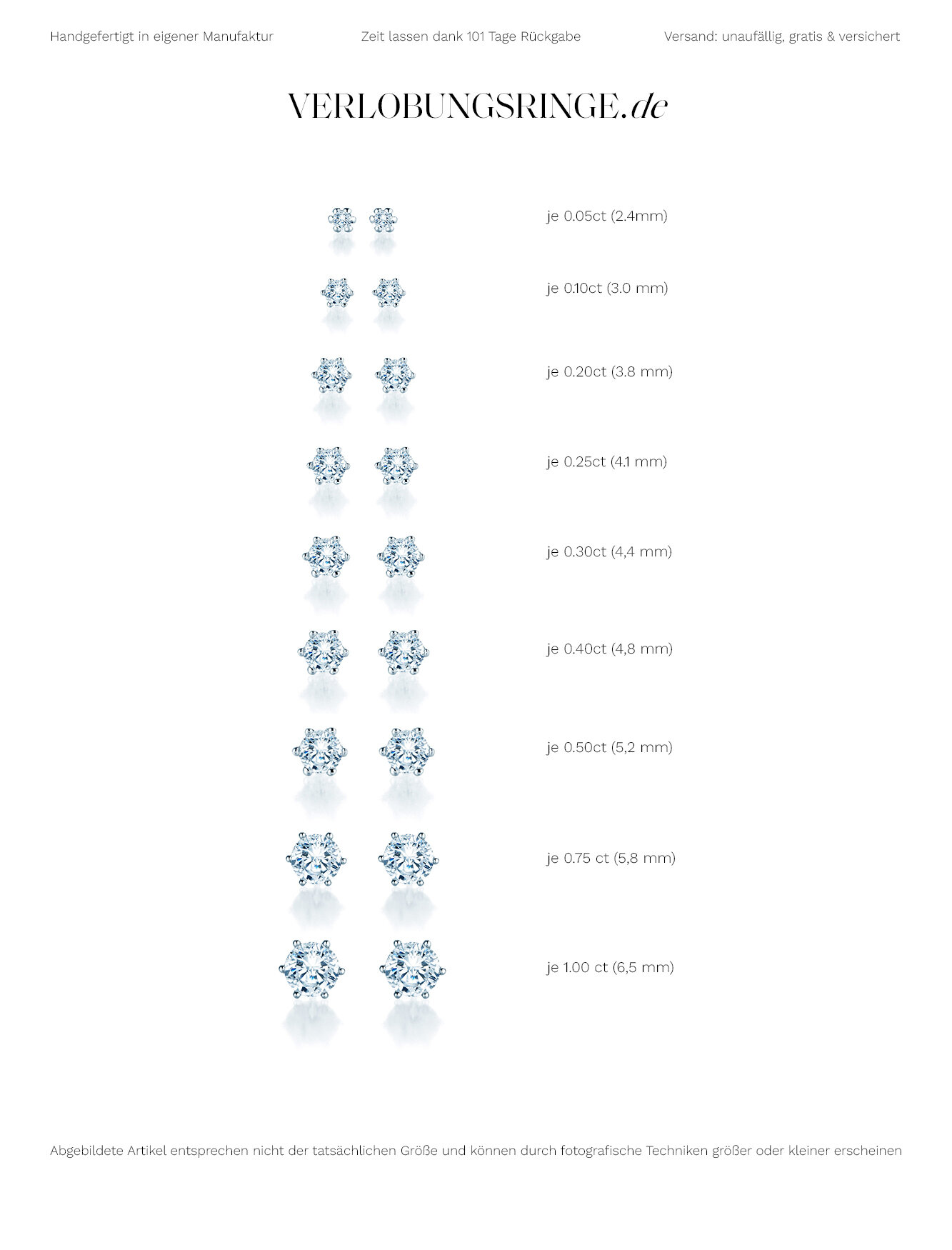 Classic simple stud earrings handmade in our manufactory. Our ear studs optionally made of 18 carat gold or platinum 950/- are the ideal companion for every day. You can choose your desired carat size yourself under diamond size.