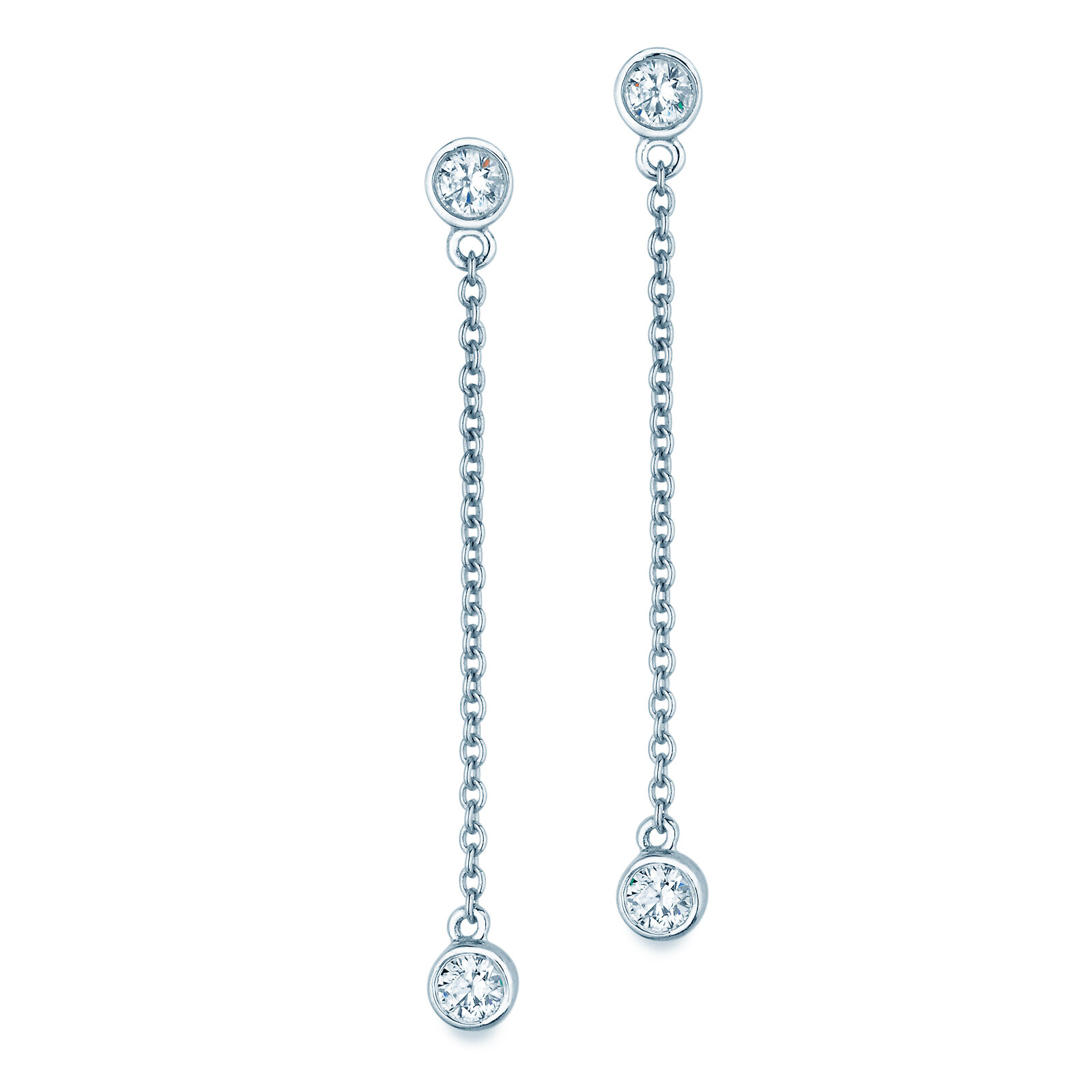 There is a choice of earring pairs with two or three diamonds. Both variants are available in five diamond sizes in white gold, yellow gold or rose gold.