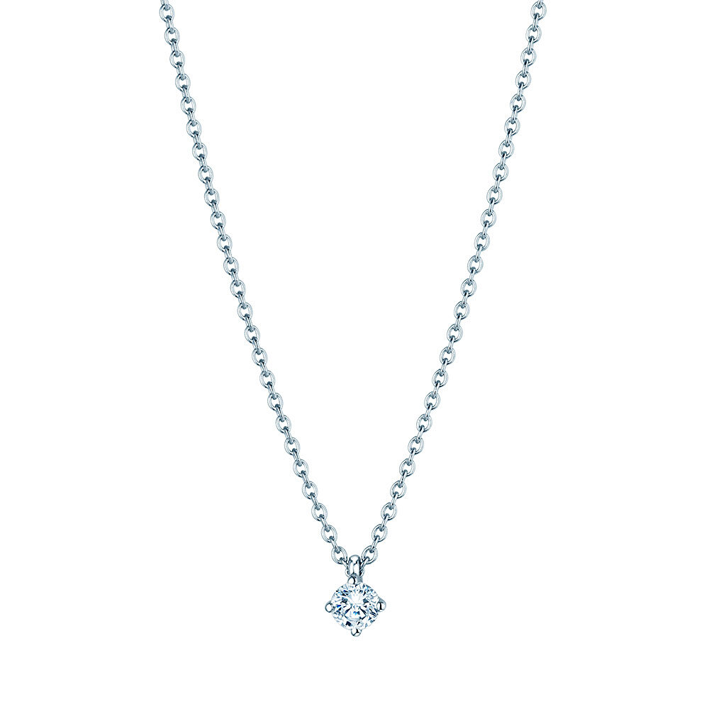 Set in a 4 prong setting, the single solitaire pendant sparkles. You have the choice and can order the pendant with or without a matching chain. We offer the diamond between 0.15 carat and one carat.