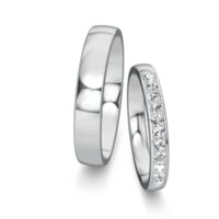 White gold is - next to classic gold - the most popular wedding ring precious metal among young couples. If the piece of jewelry is to be worn together on the same hand with the engagement ring, four out of five women opt for the same precious metal as the basis for finding matching rings.